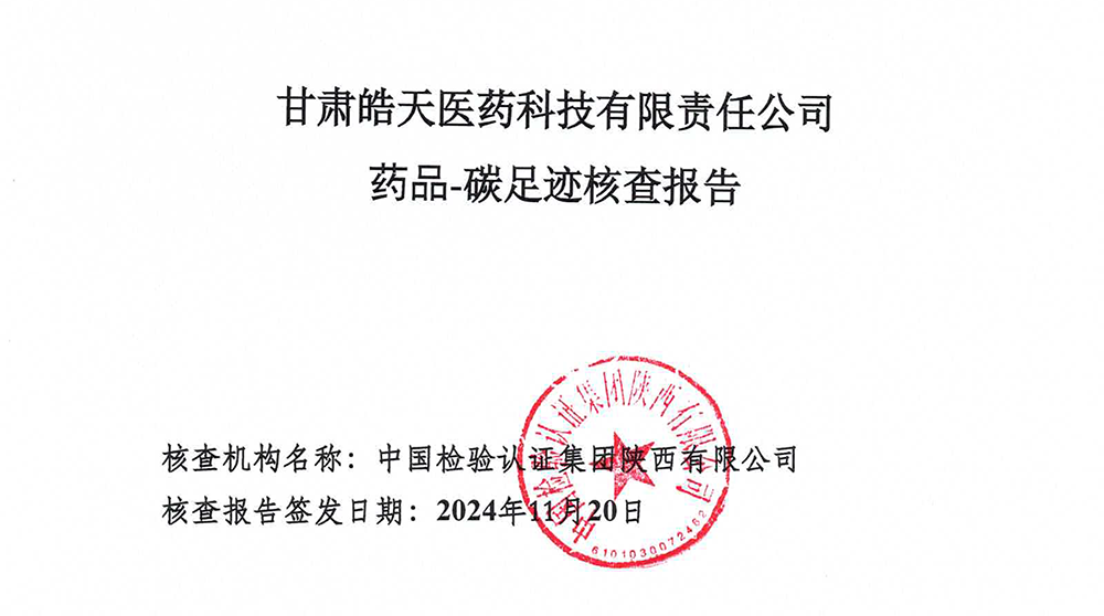 碳足跡核查報告--甘肅皓天醫(yī)藥科技有限責(zé)任公司